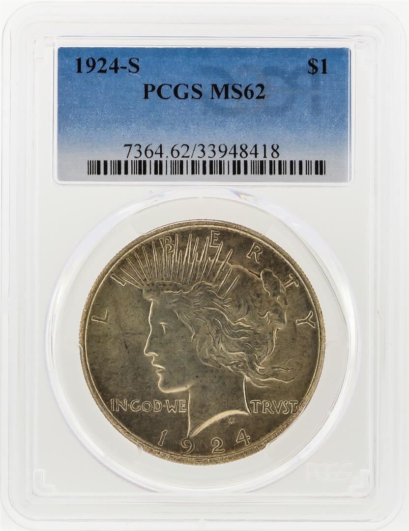 1924-S $1 Peace Silver Dollar PCGS Graded MS62