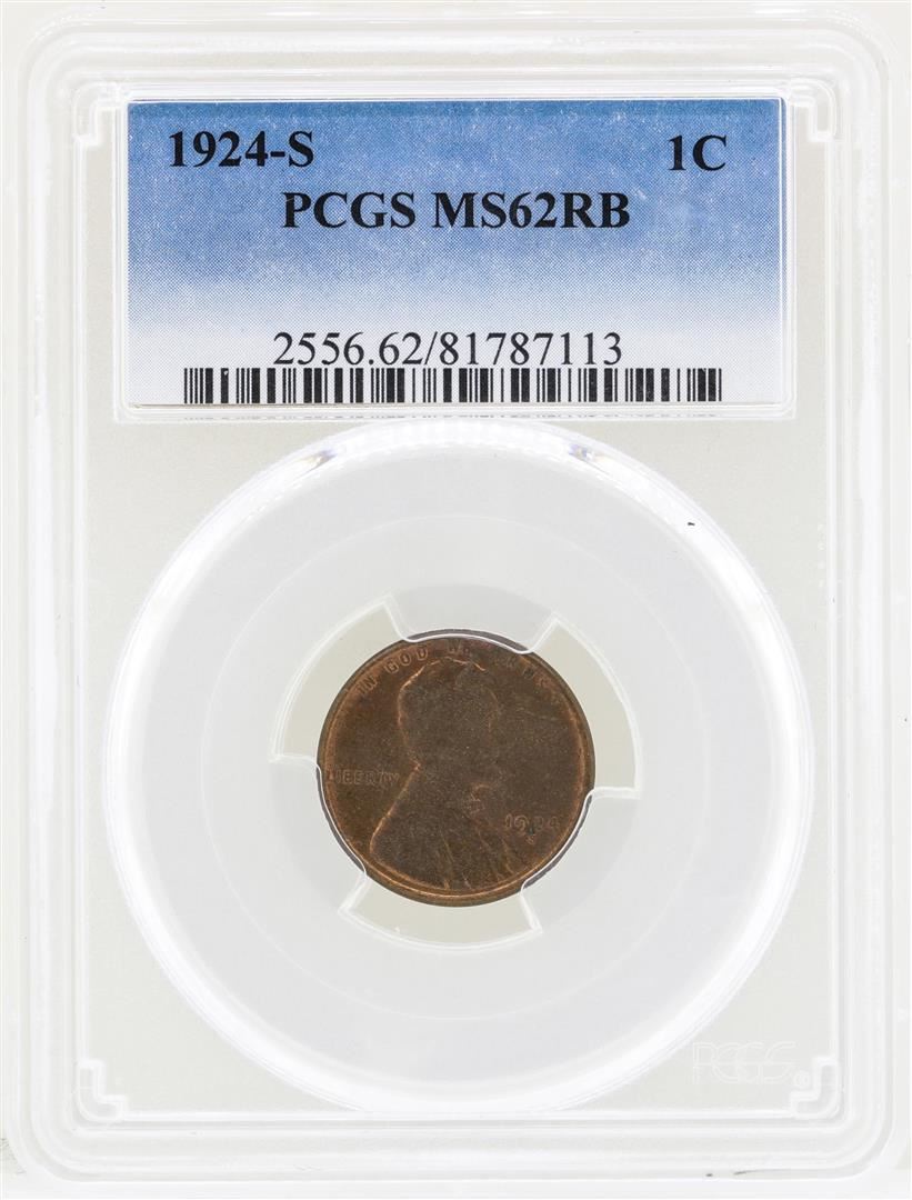 One 1924-S Lincoln Wheat Penny Coin PCGS MS62RB. PCGS Graded.