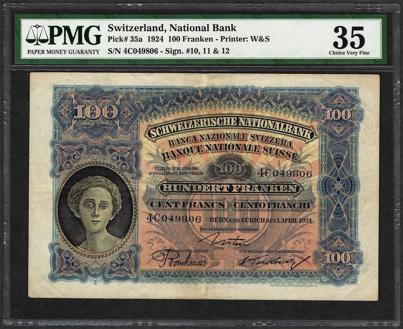 1924 Switzerland National Bank 100 Franken Bank Note PMG Choice Very Fine 35