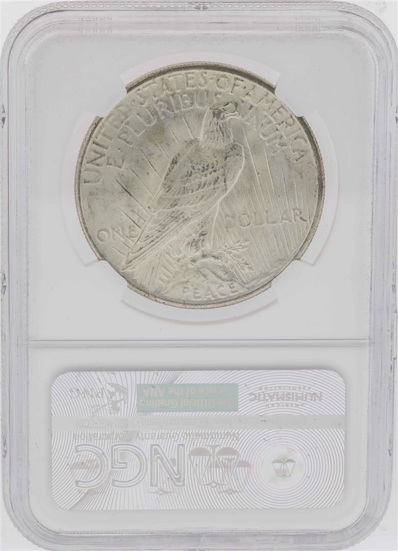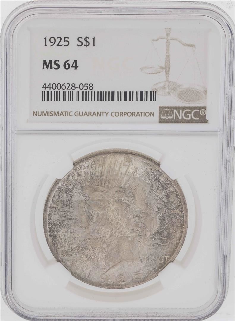 One 1925 $1 Peace Silver Dollar Coin NGC MS64. NGC Certified.