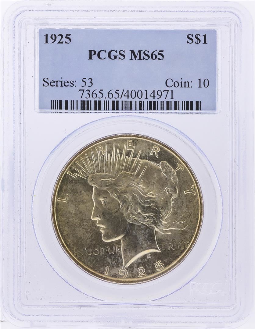 One 1925 $1 Peace Silver Dollar Coin PCGS MS65. PCGS Graded.