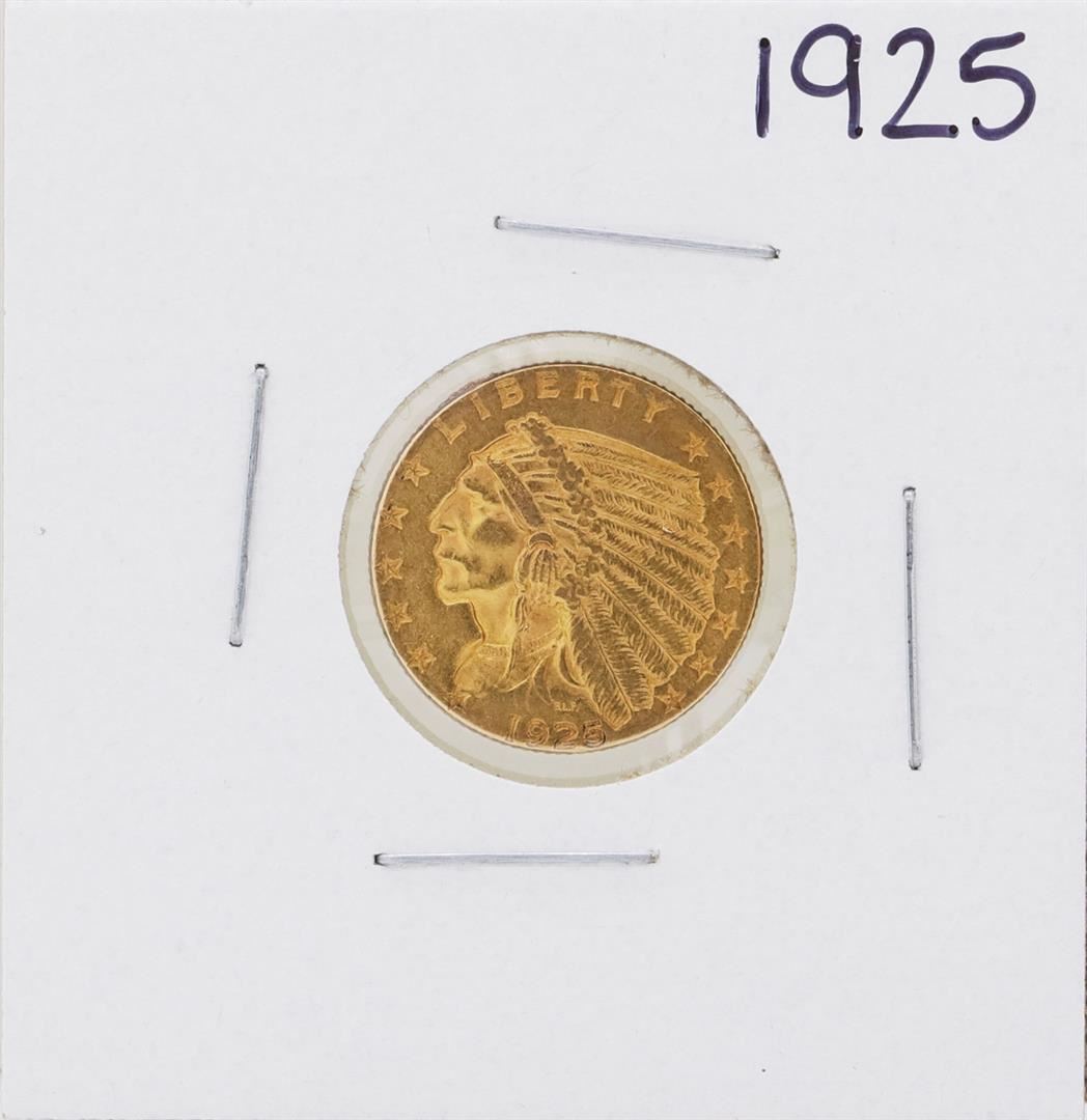 One 1925 $2 1/2 Indian Head Quarter Eagle Gold Coin.