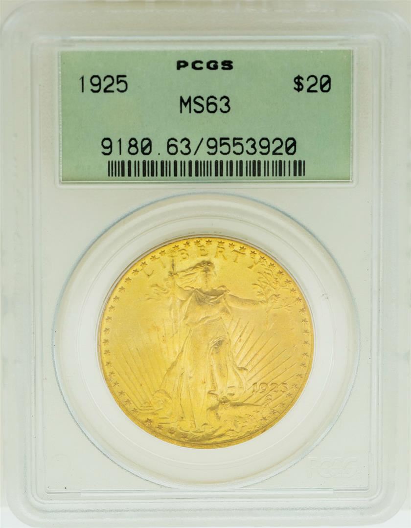 One 1925 $20 St. Gaudens Double Eagle Gold Coin PCGS MS63. PCGS Graded.