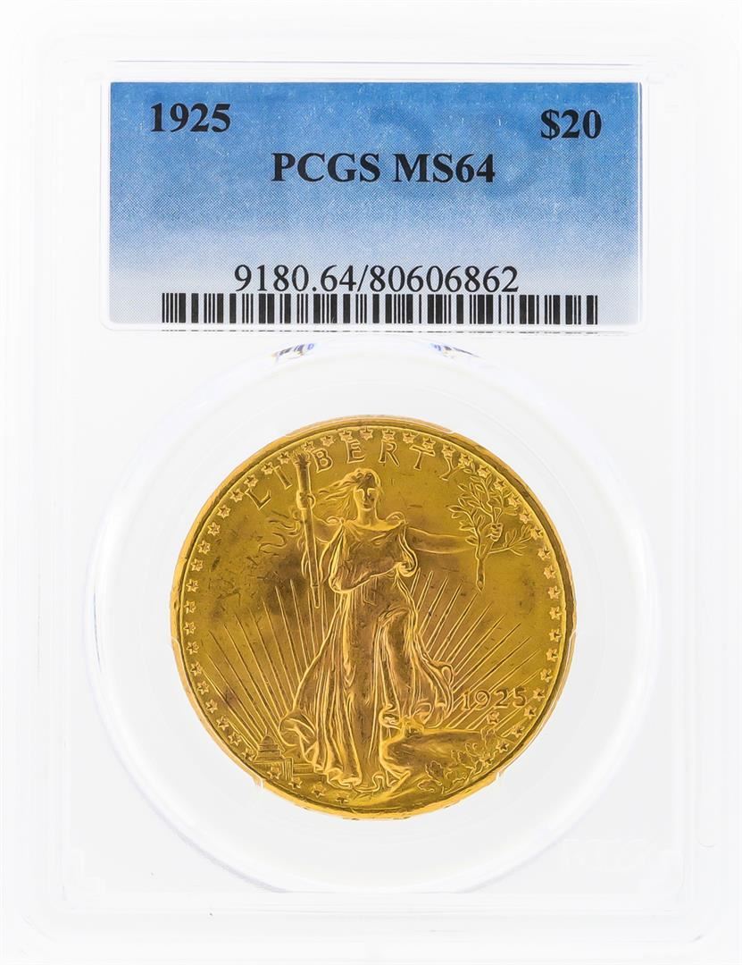 One 1925 $20 St. Gaudens Double Eagle Gold Coin PCGS MS64. PCGS Graded.