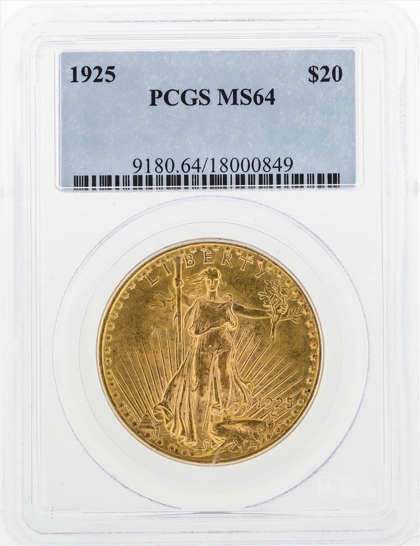 One 1925 $20 St. Gaudens Double Eagle Gold Coin PCGS MS64. PCGS Graded.