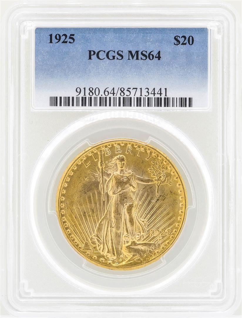 One 1925 $20 St. Gaudens Double Eagle Gold Coin PCGS MS64. PCGS Graded.