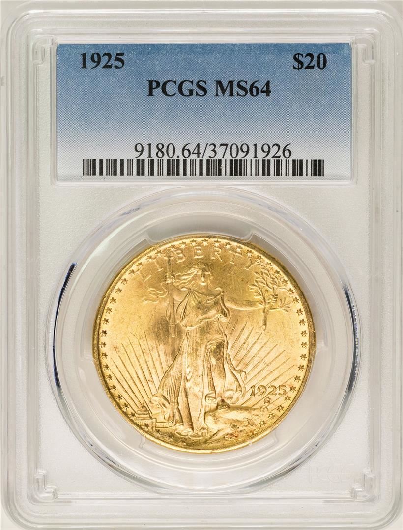 One 1925 $20 St. Gaudens Double Eagle Gold Coin PCGS MS64. PCGS Graded.