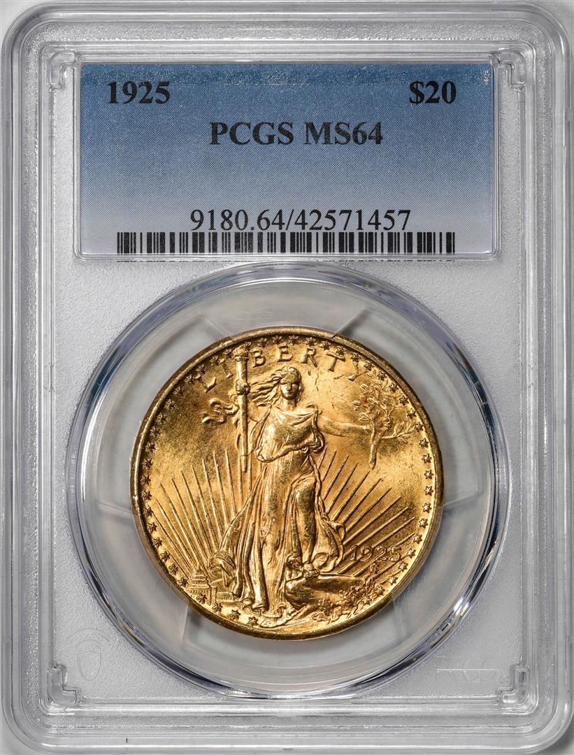 One 1925 $20 St. Gaudens Double Eagle Gold Coin PCGS MS64. PCGS Graded.