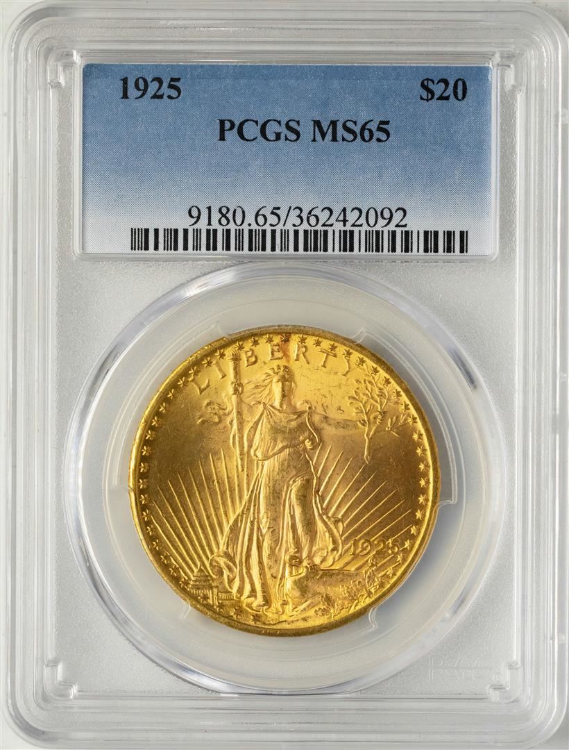 One 1925 $20 St. Gaudens Double Eagle Gold Coin PCGS MS65. PCGS Graded.