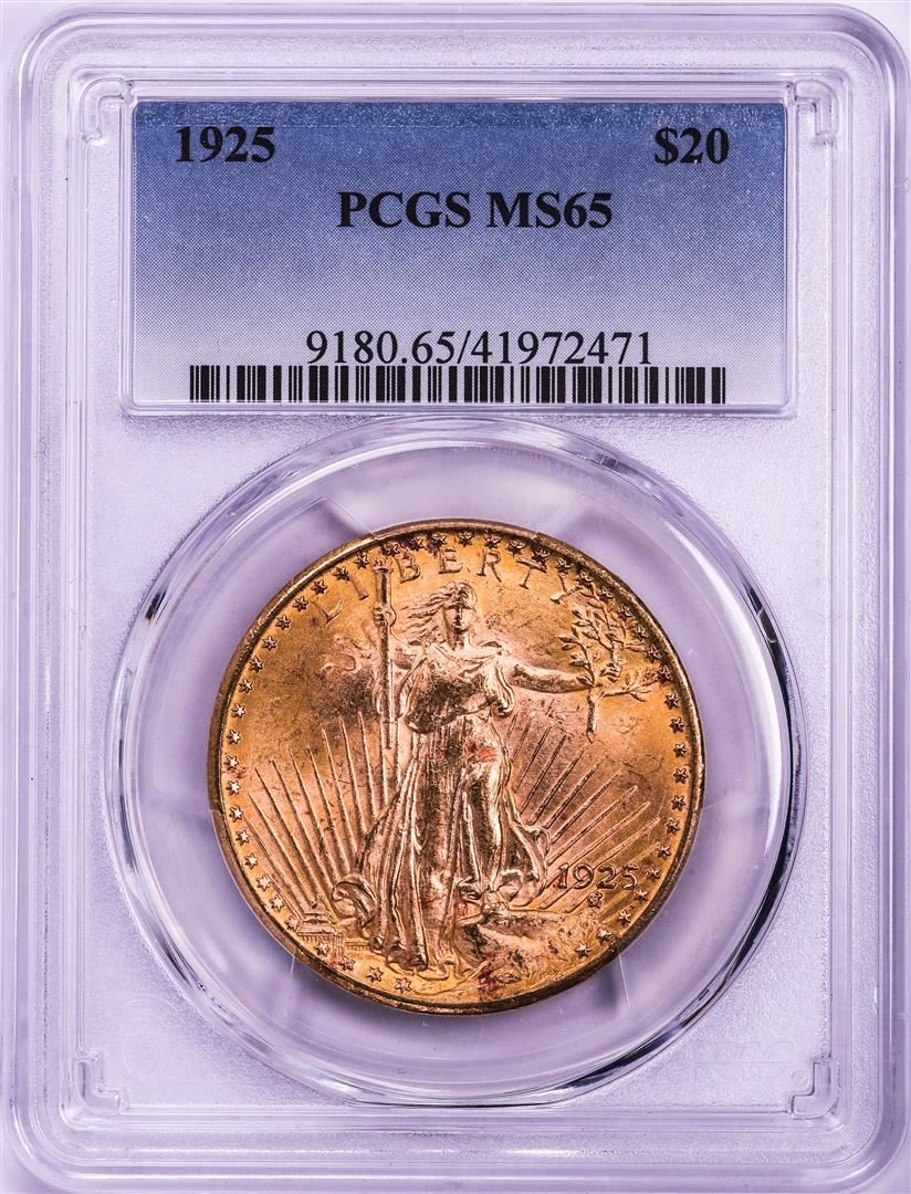 One 1925 $20 St. Gaudens Double Eagle Gold Coin PCGS MS65.