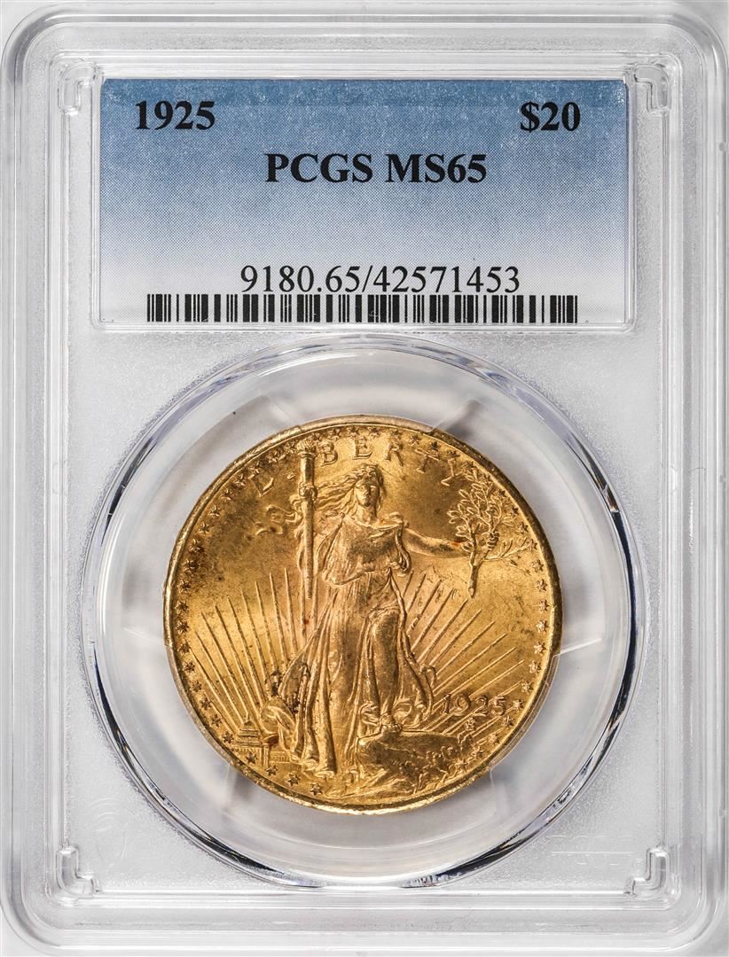One 1925 $20 St Gaudens Double Eagle Gold Coin PCGS MS65. PCGS Graded.