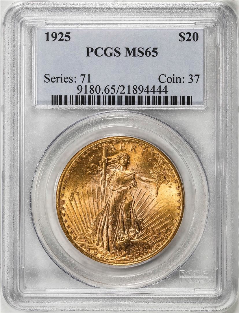 One 1925 $20 St. Gaudens Double Eagle Gold Coin PCGS MS65. PCGS Graded.