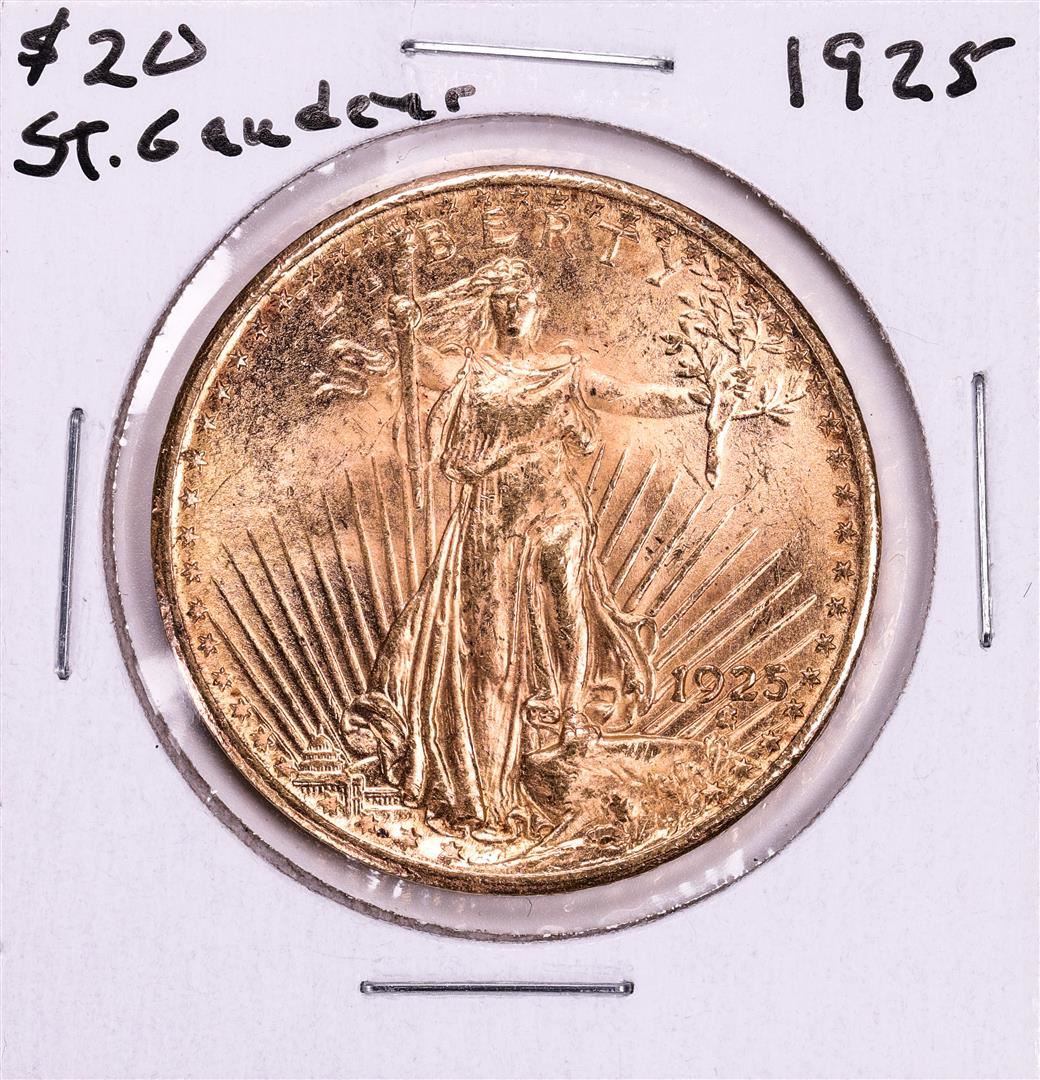 One 1925 $20 St. Gaudens Double Eagle Gold Coin.
