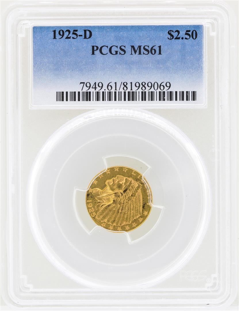 1925-D $2 1/2 Indian Head Quarter Eagle Gold Coin NGC MS61