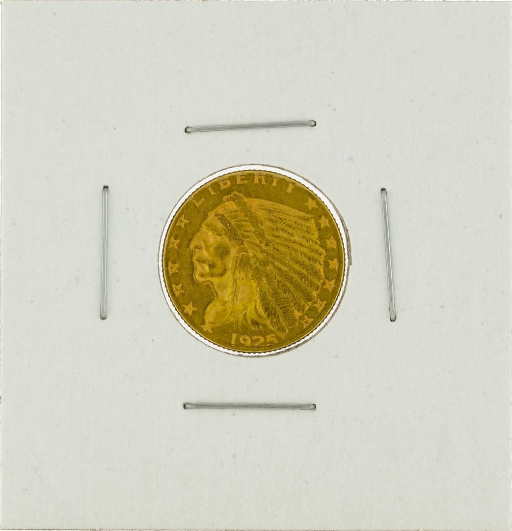 One 1925-D $2 1/2 Indian Head Quarter Eagle Gold Coin.