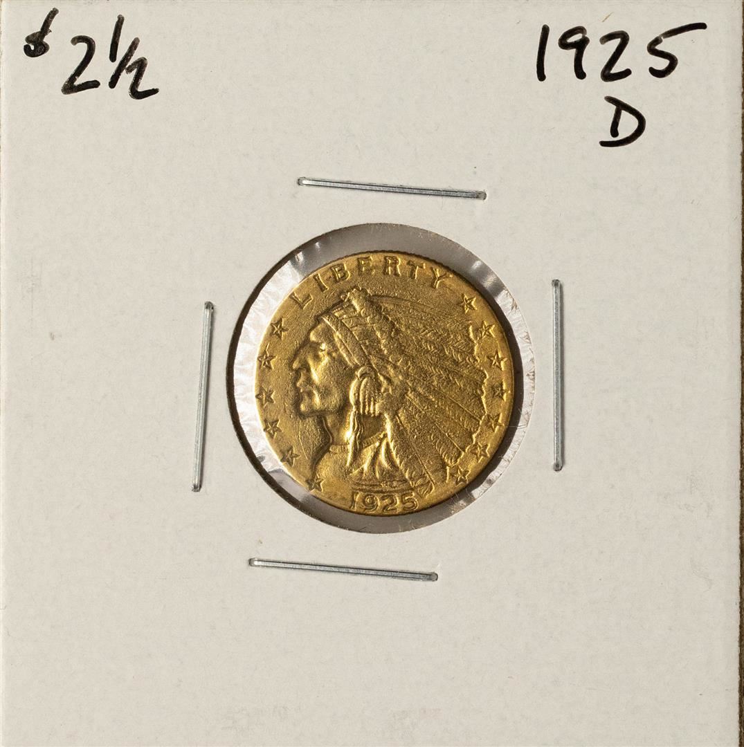 One 1925-D $2 1/2 Indian Head Quarter Eagle Gold Coin.
