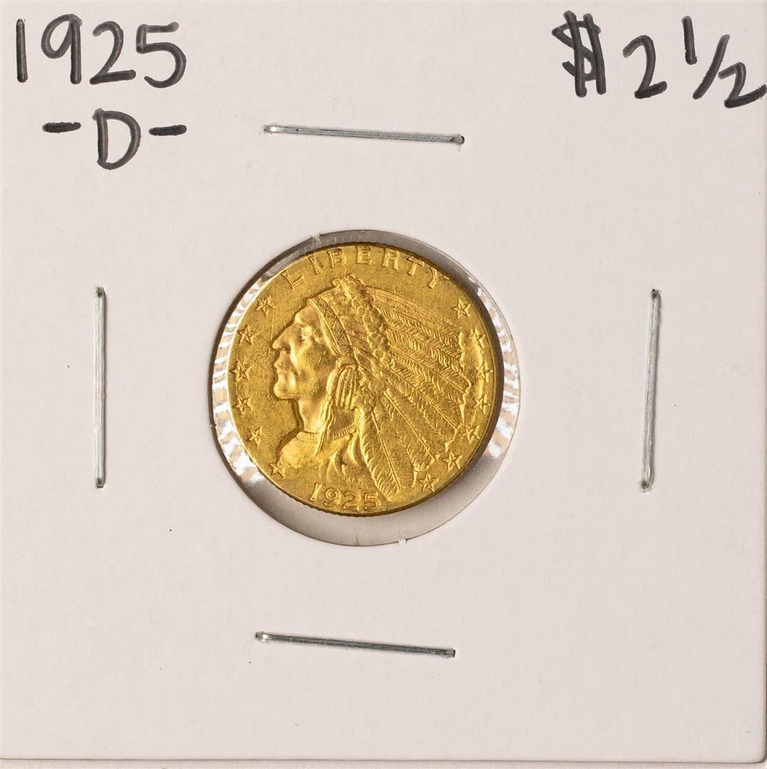 One 1925-D $2 1/2 Indian Head Quarter Eagle Gold Coin.