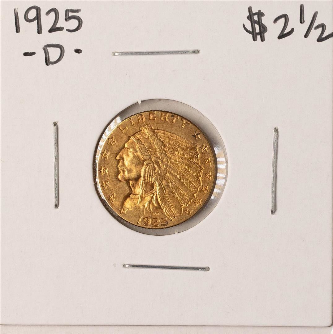 One 1925-D $2 1/2 Indian Head Quarter Eagle Gold Coin.