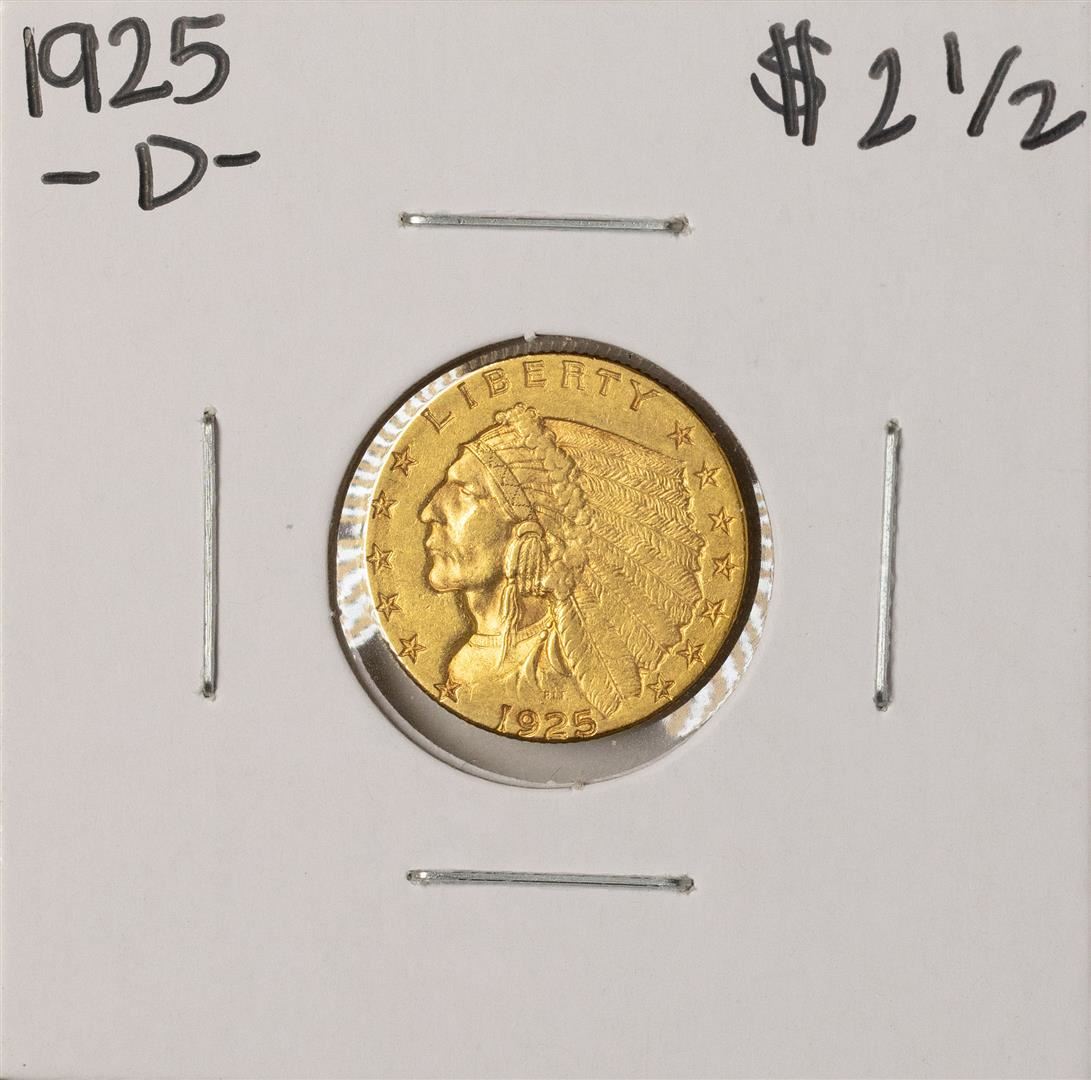 One 1925-D $2 1/2 Indian Head Quarter Eagle Gold Coin.