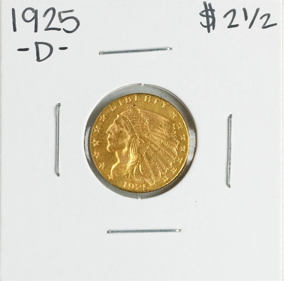 One 1925-D $2 1/2 Indian Head Quarter Eagle Gold Coin.