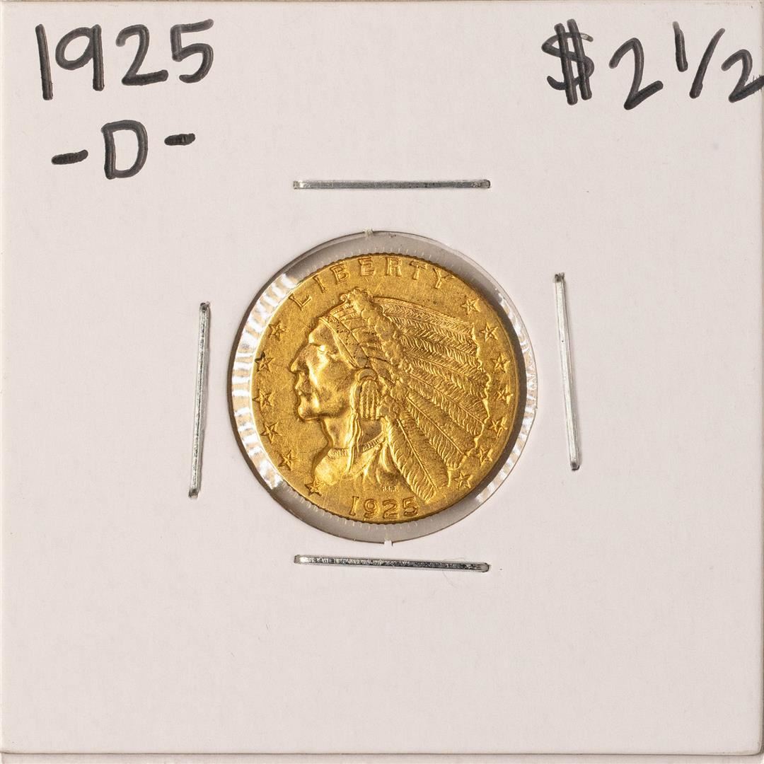 One 1925-D $2 1/2 Indian Head Quarter Eagle Gold Coin.