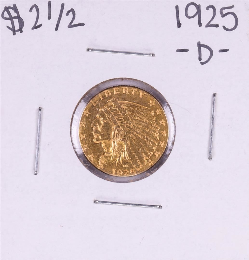 One 1925-D $2 1/2 Indian Head Quarter Eagle Gold Coin.