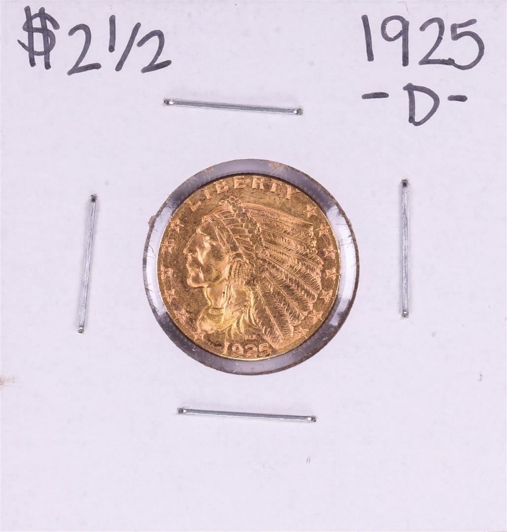 One 1925-D $2 1/2 Indian Head Quarter Eagle Gold Coin.