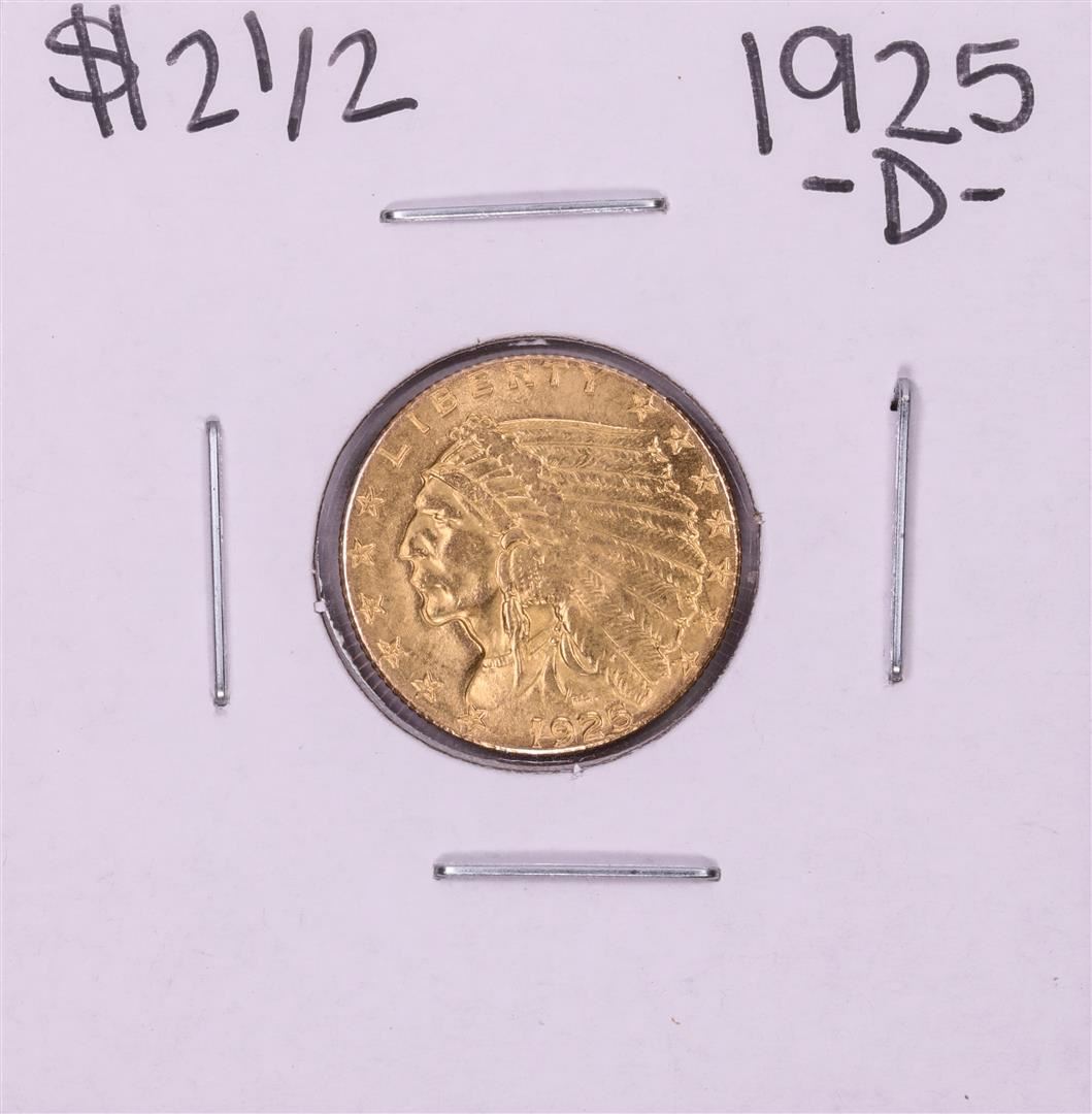 One 1925-D $2 1/2 Indian Head Quarter Eagle Gold Coin.