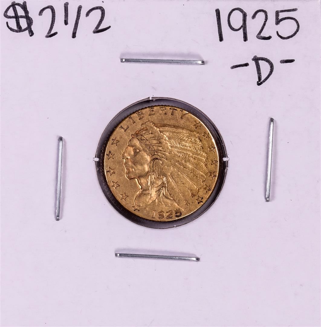 One 1925-D $2 1/2 Indian Head Quarter Eagle Gold Coin.
