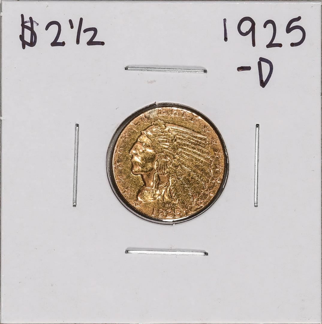 One 1925-D $2 1/2 Indian Head Quarter Eagle Gold Coin, please note there is some damage as shown in the pictures.