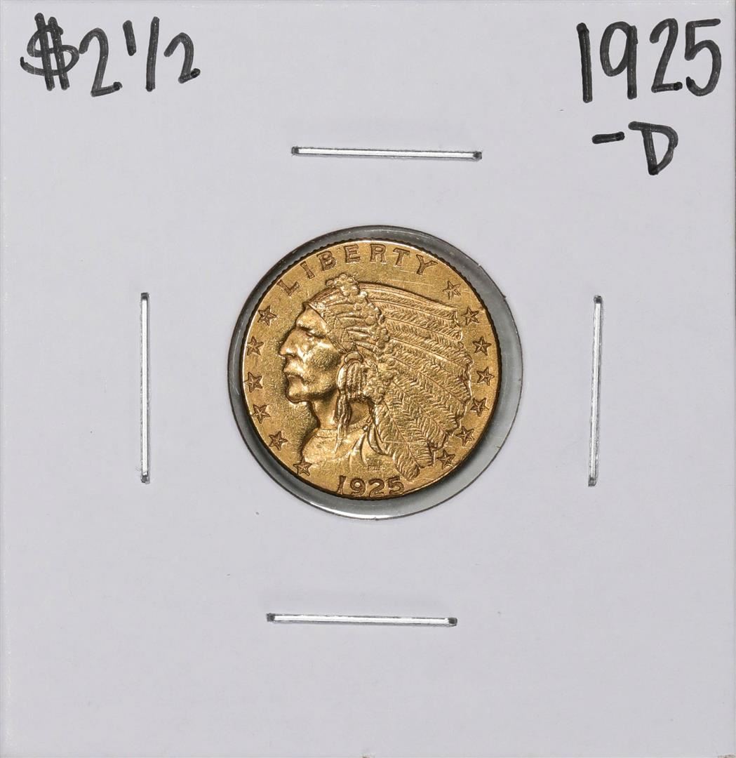 One 1925-D $2 1/2 Indian Head Quarter Eagle Gold Coin.