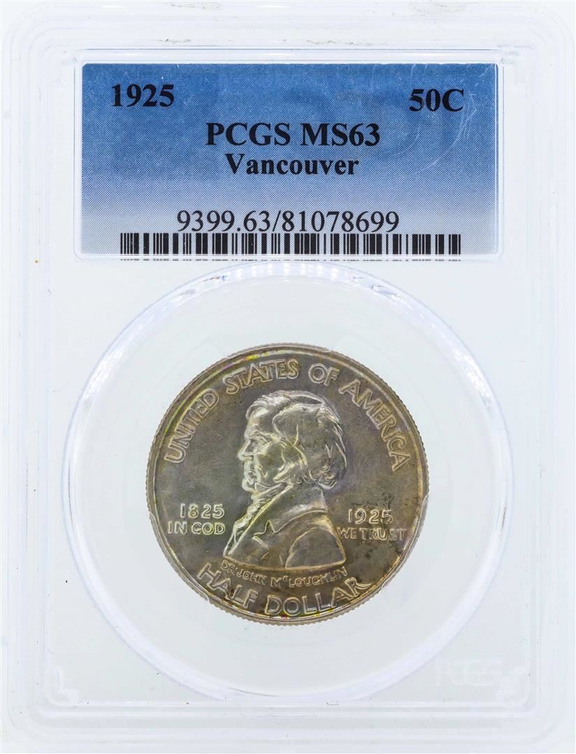 One 1925 Fort Vancouver Centennial Half Dollar PCGS Graded MS63. PCGS Graded.