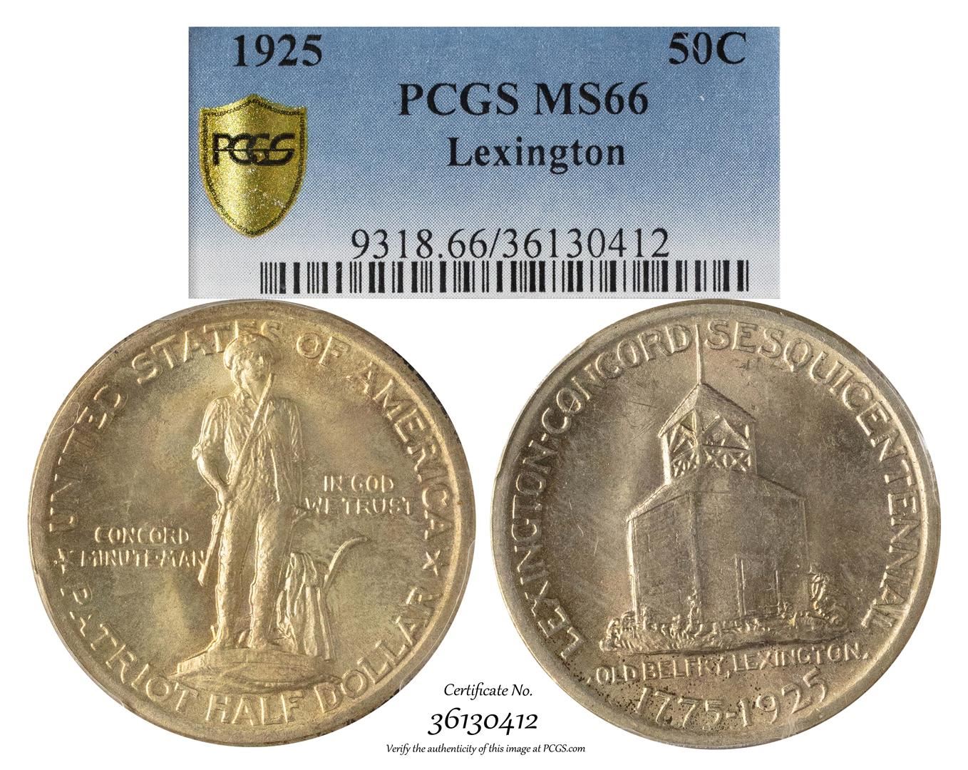1925 Lexington Sesquicentennial Commemorative Half Dollar Coin PCGS MS66
