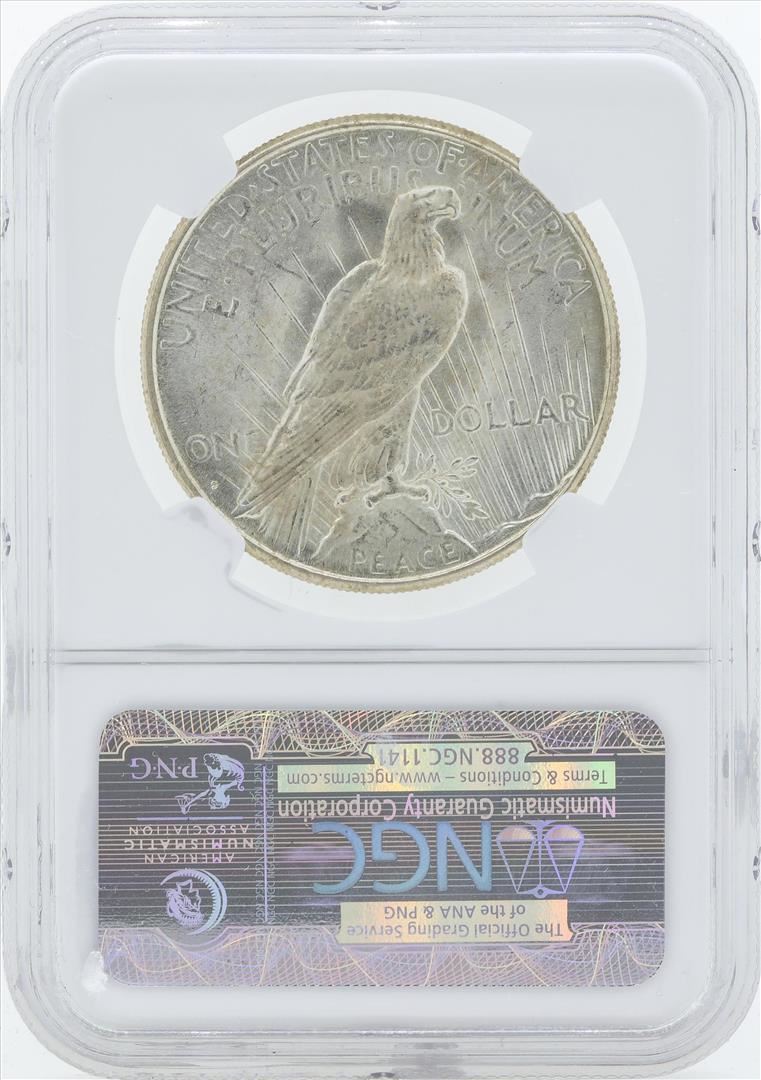 One 1925-S $1 Peace Silver Dollar Coin NGC MS65. NGC Certified.