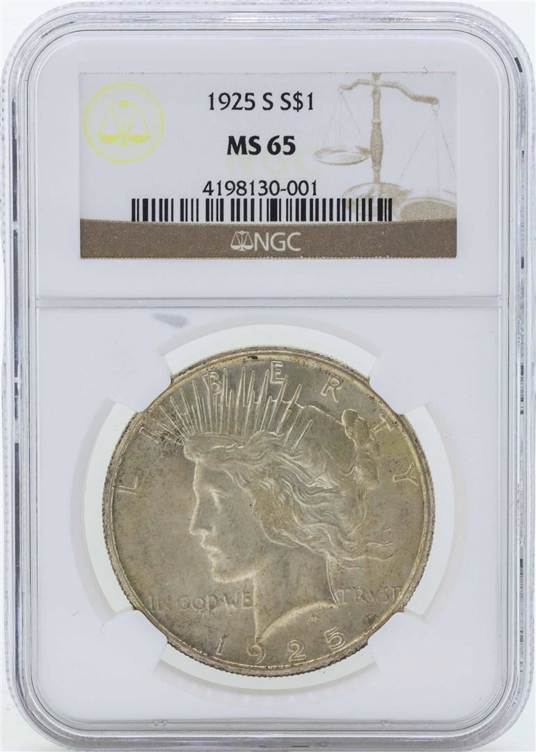 1925-S $1 Peace Silver Dollar Coin NGC MS65