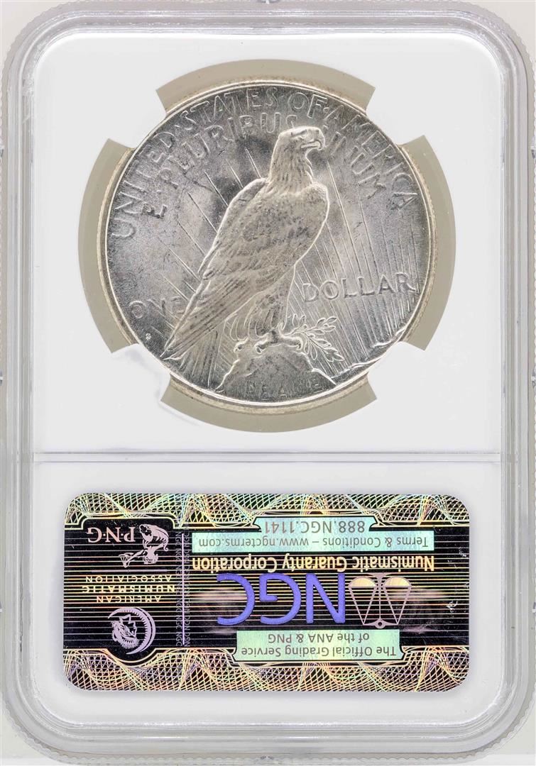 One 1925-S $1 Peace Silver Dollar Coin NGC MS65. NGC Certified.