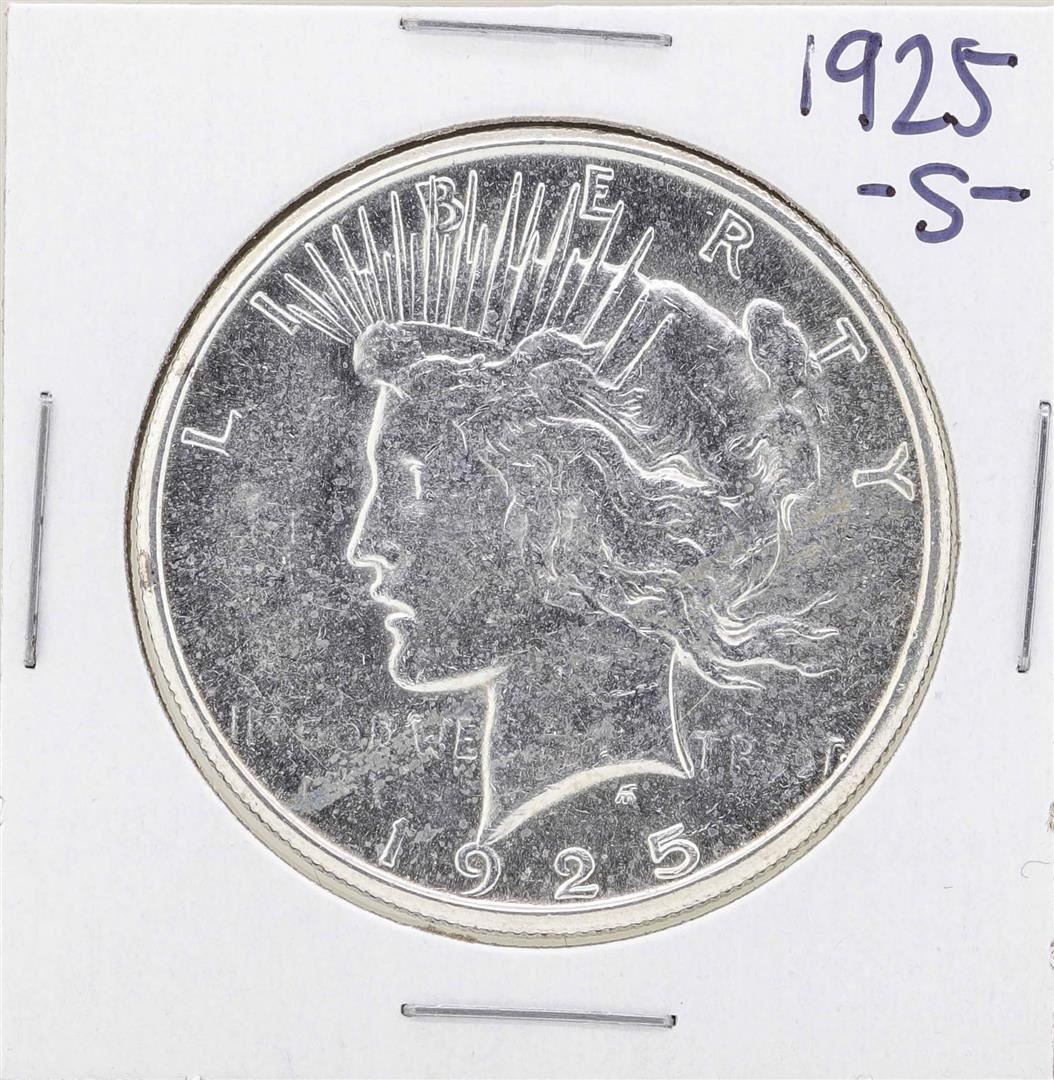 One 1925-S $1 Peace Silver Dollar Coin.