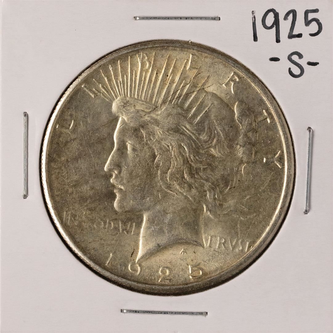One 1925-S $1 Peace Silver Dollar Coin.