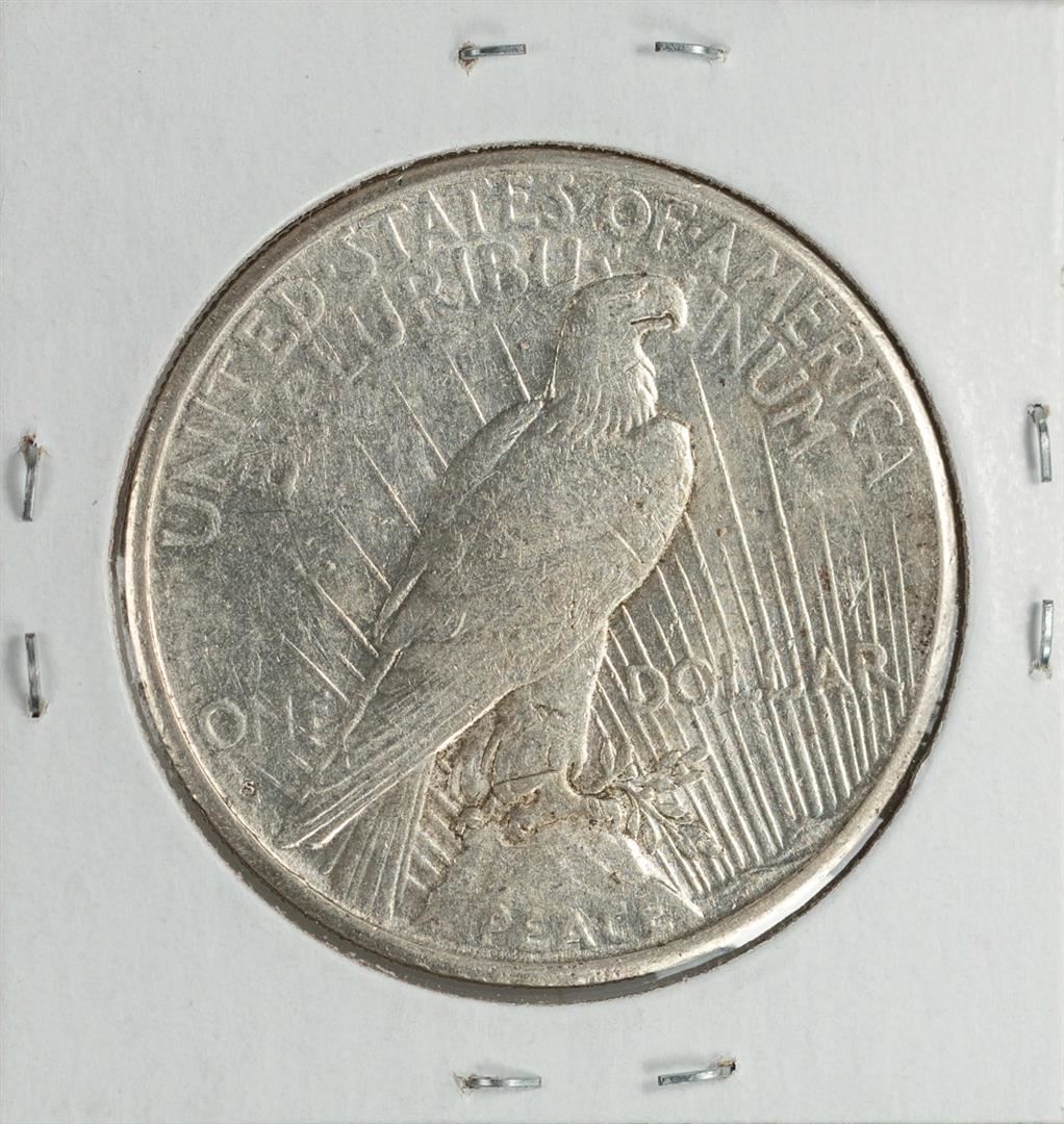 One 1925-S $1 Peace Silver Dollar Coin.