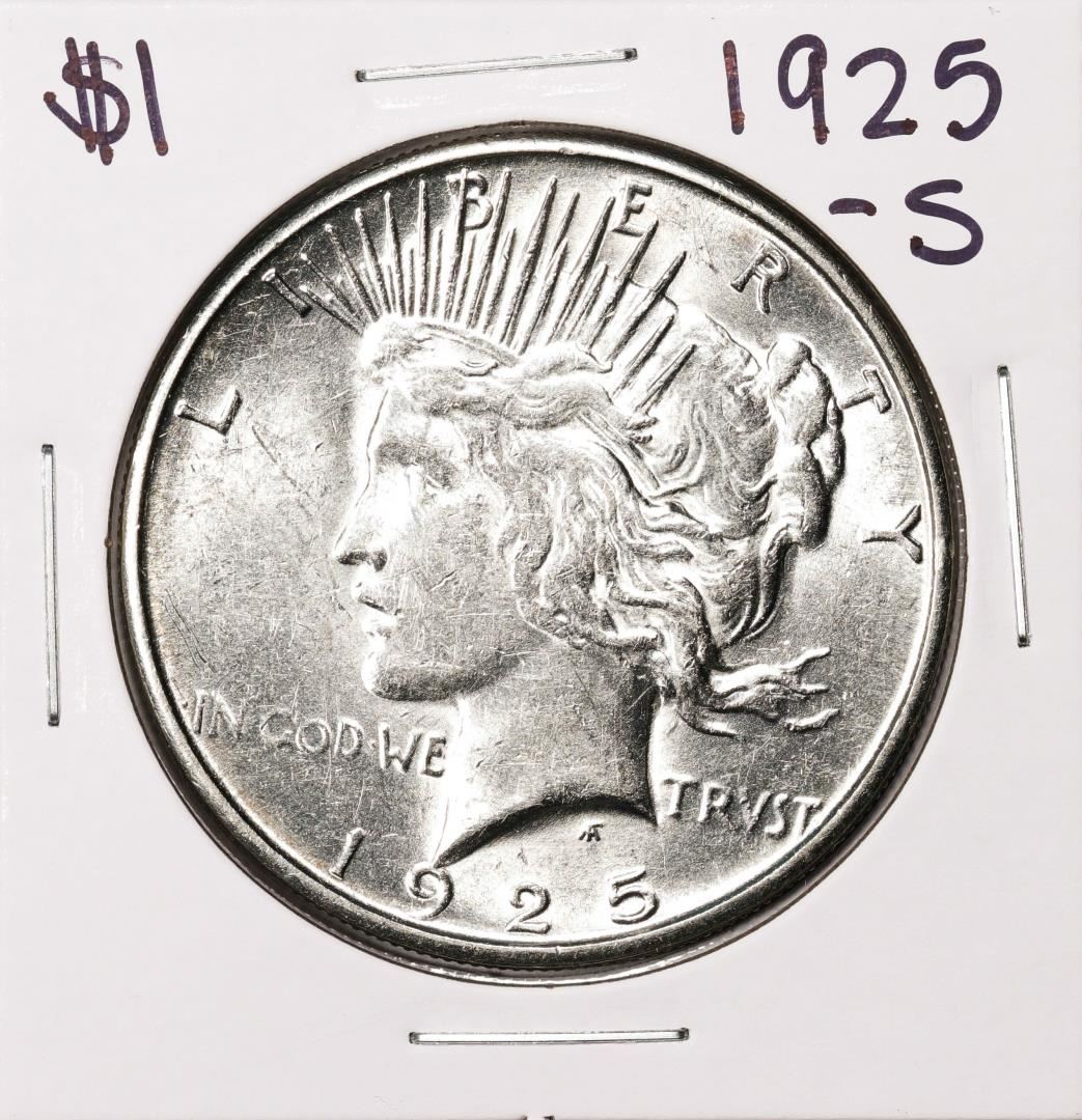 One 1925-S $1 Peace Silver Dollar Coin.