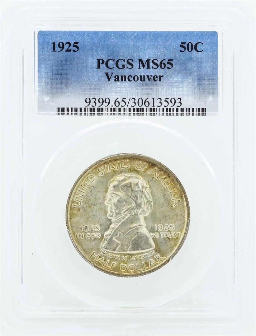 One 1925 Vancouver Commemorative Half Dollar Coin PCGS MS65. PCGS Graded.