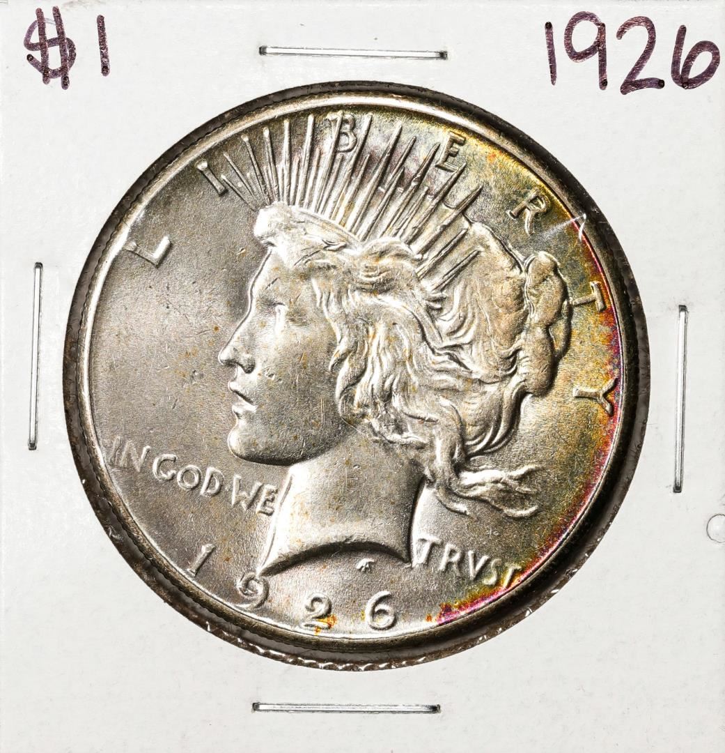 One 1926 $1 Peace Silver Dollar Coin Amazing Toning.