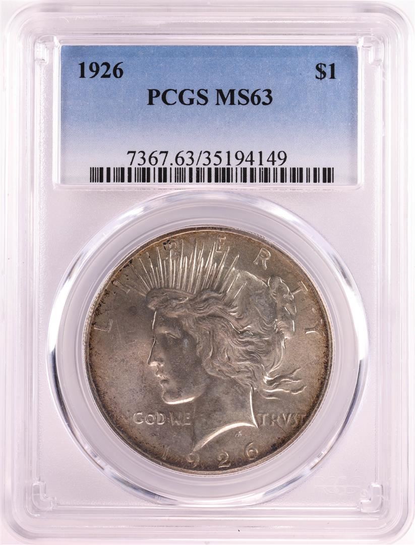 One 1926 $1 Peace Silver Dollar Coin PCGS MS63. PCGS Graded.