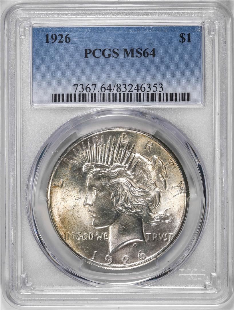 1926 $1 Peace Silver Dollar Coin PCGS MS64