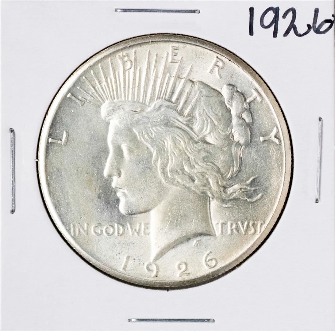 One 1926 $1 Peace Silver Dollar Coin.