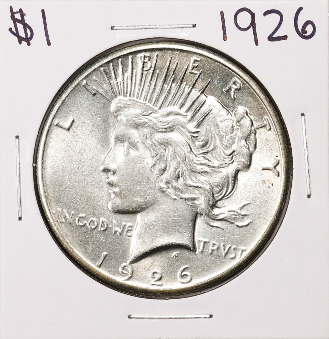 One 1926 $1 Peace Silver Dollar Coin.