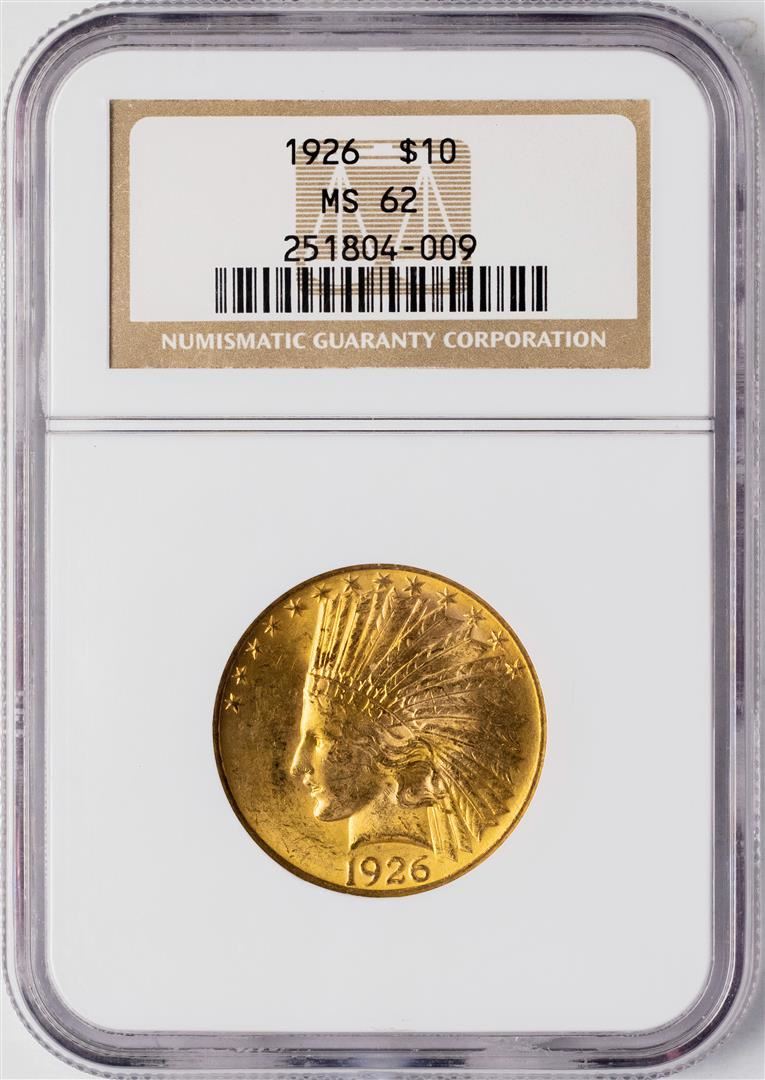 One 1926 $10 Indian Head Eagle Gold Coin NGC MS62. NGC Certified.