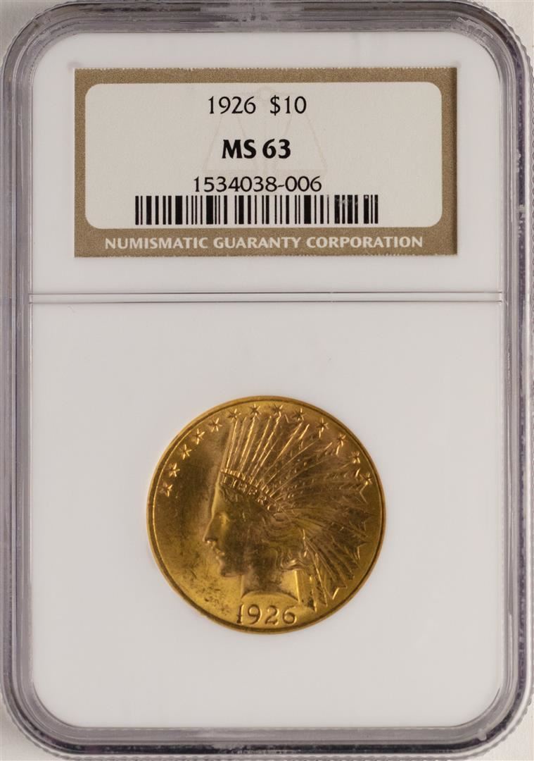 One 1926 $10 Indian Head Eagle Gold Coin NGC MS63.