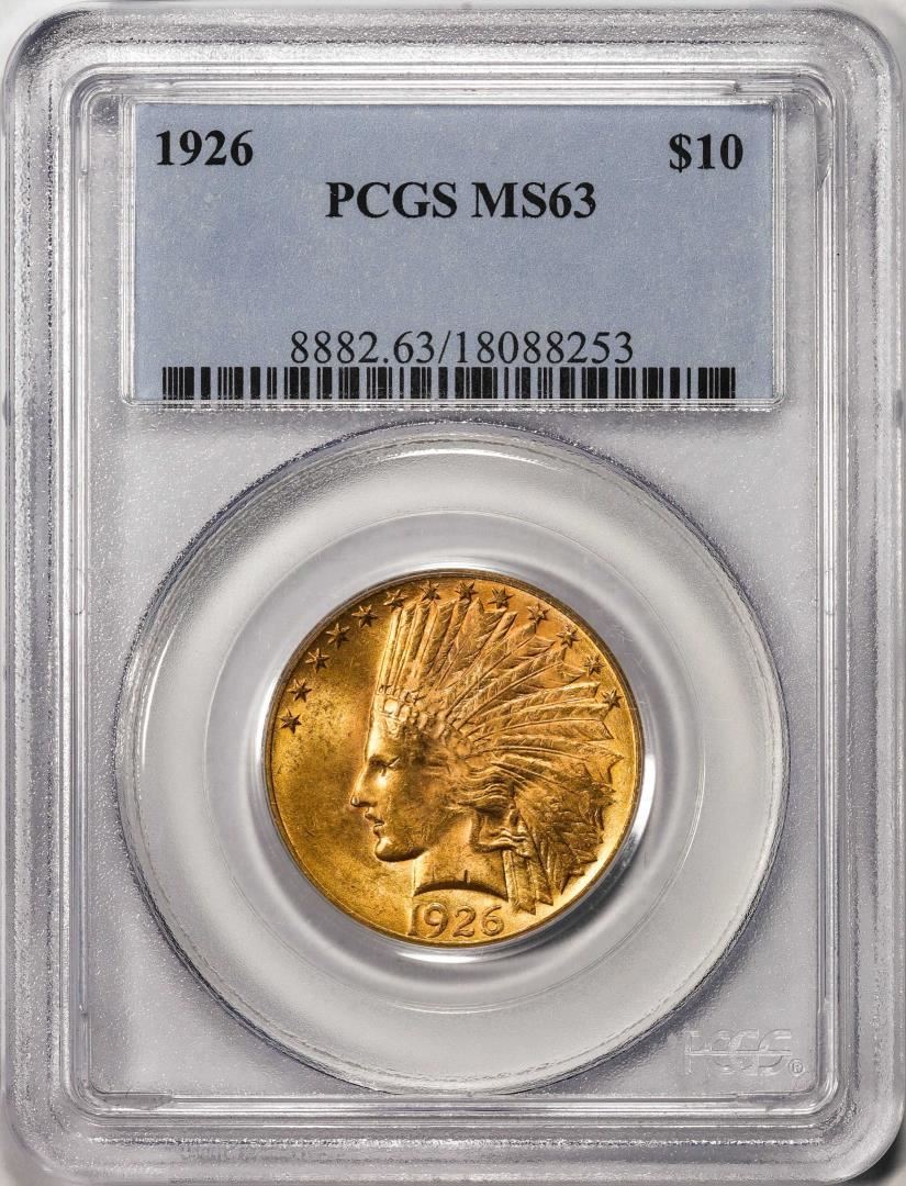 One 1926 $10 Indian Head Eagle Gold Coin PCGS MS63. PCGS Graded.