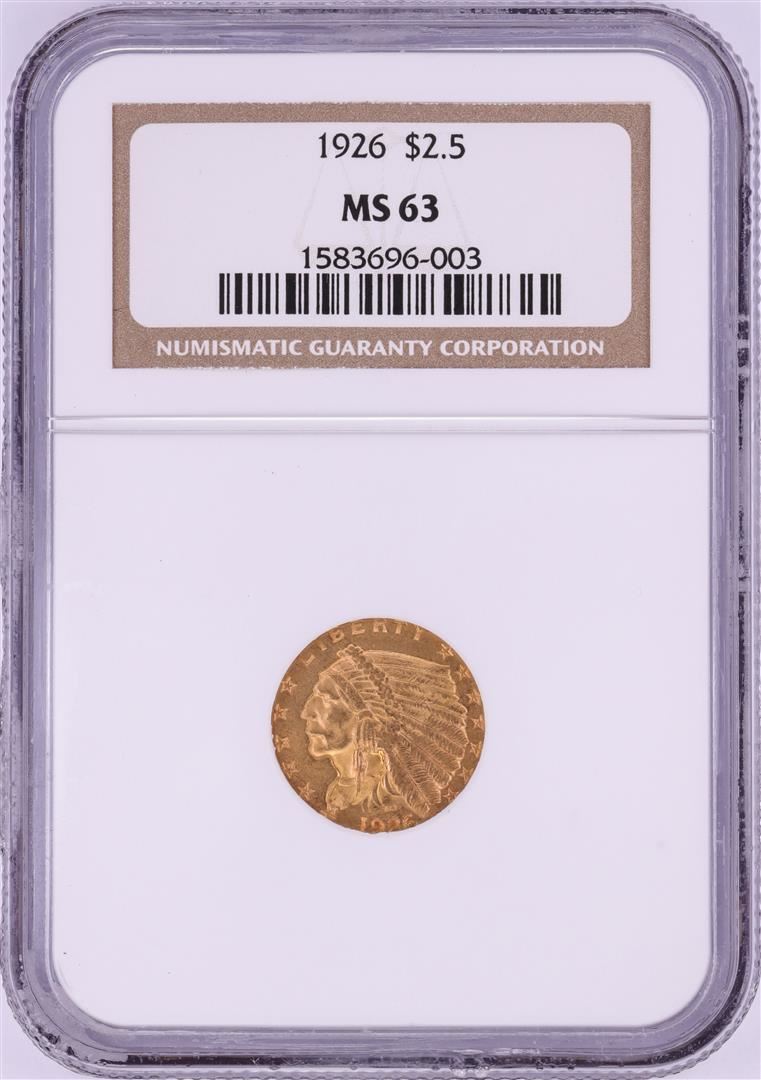 1926 $2 1/2 Indian Head Gold Coin NGC MS63